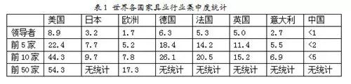 图1全球各行业集中度对比