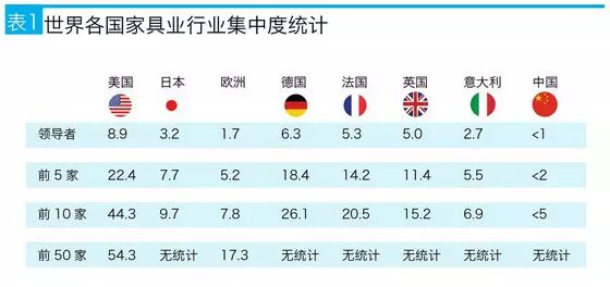 表1为世界各国或地区的家具行业集中度统计。各国家具行业内部的集中度与其工业发达水平及社会文化特点相关,日本文化与市场细分是其集中度低于其它工业化水平高的国家的根本原因。意大利是个设计和创新导向的国家,其集中度低是必然表现。美国的经济基础、短暂历史文化、社会消费特点与产业结构是其集中度远远高于其它发达经济体的原因所在。中国尚未定型,无论最终怎样,目前的低集中度定会有所提升,行业正在面临洗牌和重组,但无论怎么提升都很难颠覆这一基本规律。那些唱衰和无视中小型企业价值的观点都是无知的。
