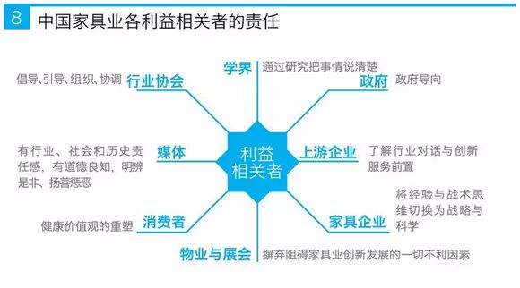 中国家具业辉煌的未来,要靠大家一起努力,共同打造。各利益相关者肩负着行业与社会的共同责任,各自需要有所作为,见图8所示。